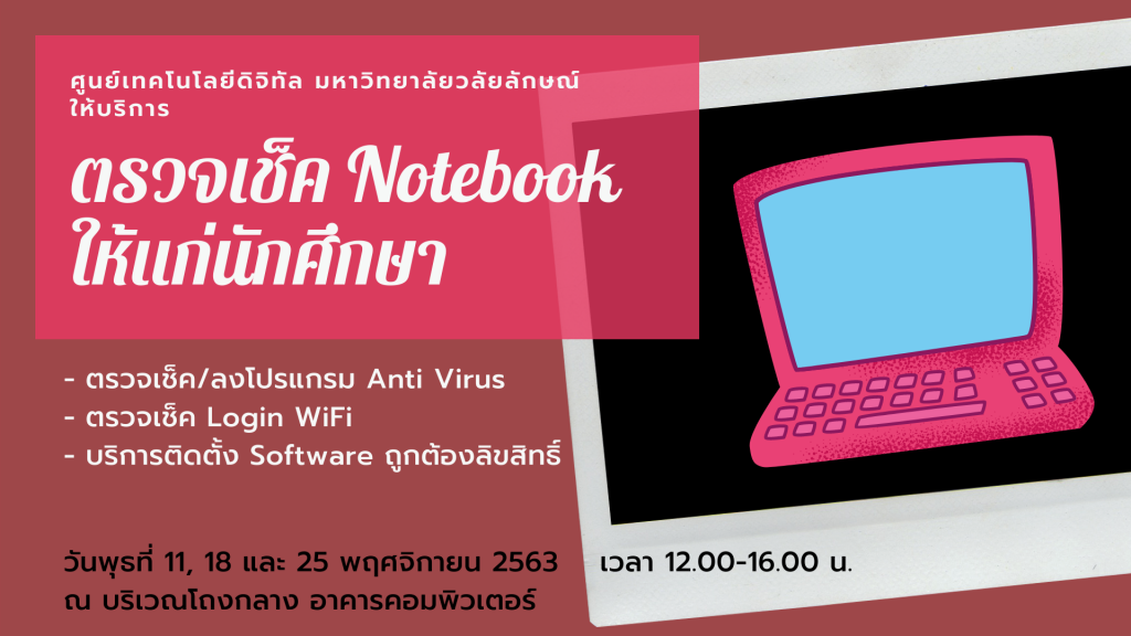 ขอเชิญนักศึกษาทุกท่านใช้บริการตรวจเช็ค Notebook ที่ศูนย […]