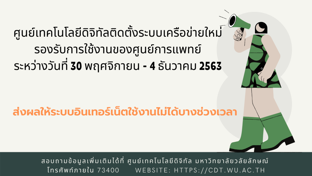 ระบบอินเทอร์เน็ตจะใช้งานไม่ได้บางช่วงเวลา ระหว่างวันที่ 30 พ.ย. – 4 ธ.ค. 63