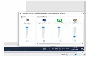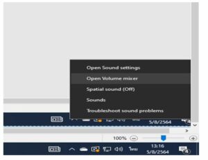 2.2 จากภาพที่ 5 ให้คลิกเมาส์ที่ Open Volume Mixer โปรแกรมจะแสดงหน้าจอถัดไปดังภาพที่6 ให้ใช้เมาส์เลื่อนปรับระดับความดังของเสียงที่ Google Chrome ได้ตามต้องการ