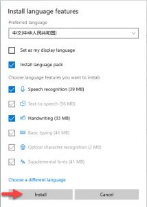 - จากรูปที่ 4 โปรแกรมจะแสดงรายละเอียดของภาษาที่เราเลือกไว้ ถ้าไม่ต้องการข้อใดให้คลิกเมาส์เพื่อเป็นการไม่เลือกติดตั้ง แต่ถ้าต้องการติดตั้งให้คลิกเมาส์เลือก จากนั้นให้คลิกปุ่ม Install