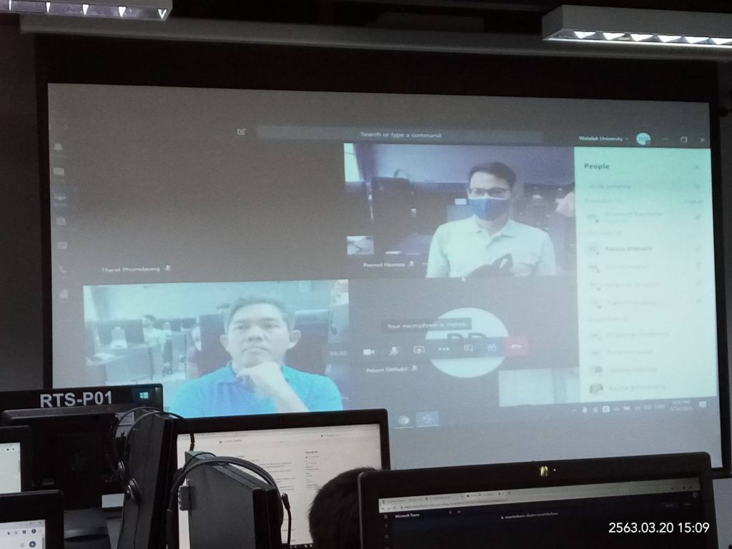 เมื่อวันศุกร์ที่ 20 มีนาคม 2563 บุคลากรศูนย์เทคโนโลยีดิจิทัล ประกอบด้วย นายวิชชุกร ด่านเดชา นายวิศิษฎ์ เรืองพรหม นางสาวภัทรานิษฐ์ โยธินวัฒนบำรุง และนายไพศาล พุมดวง เป็นวิทยากรอบรมการใช้งาน Application ต่าง ๆ สำหรับการเรียนการสอนออนไลน์ให้แก่บุคลากรที่เกี่ยวข้องของศูนย์เทคโนโลยีดิจิทัล และศูนย์บรรณสารและสื่อการศึกษา โดยมี ผู้ช่วยศาสตราจารย์ ดร. พูลสิทธิ์ หิรัญสาย ผู้อำนวยการศูนย์นวัตกรรมการเรียนและการสอนเข้าร่วมรับฟังด้วย