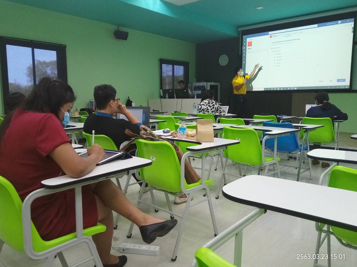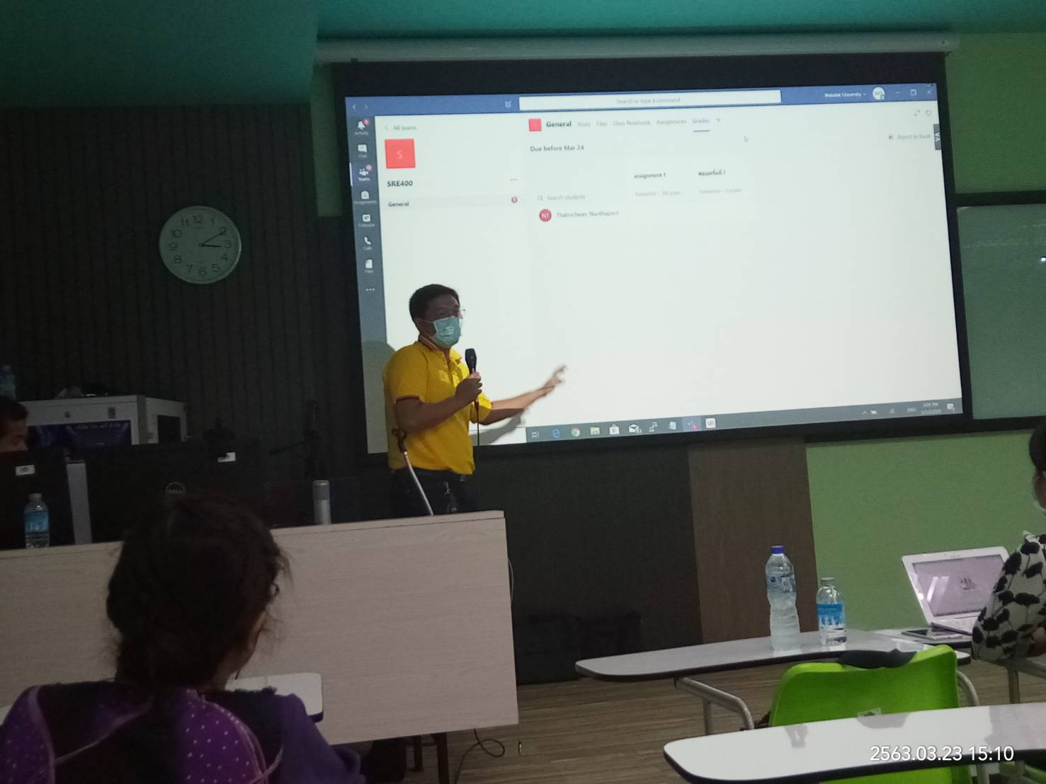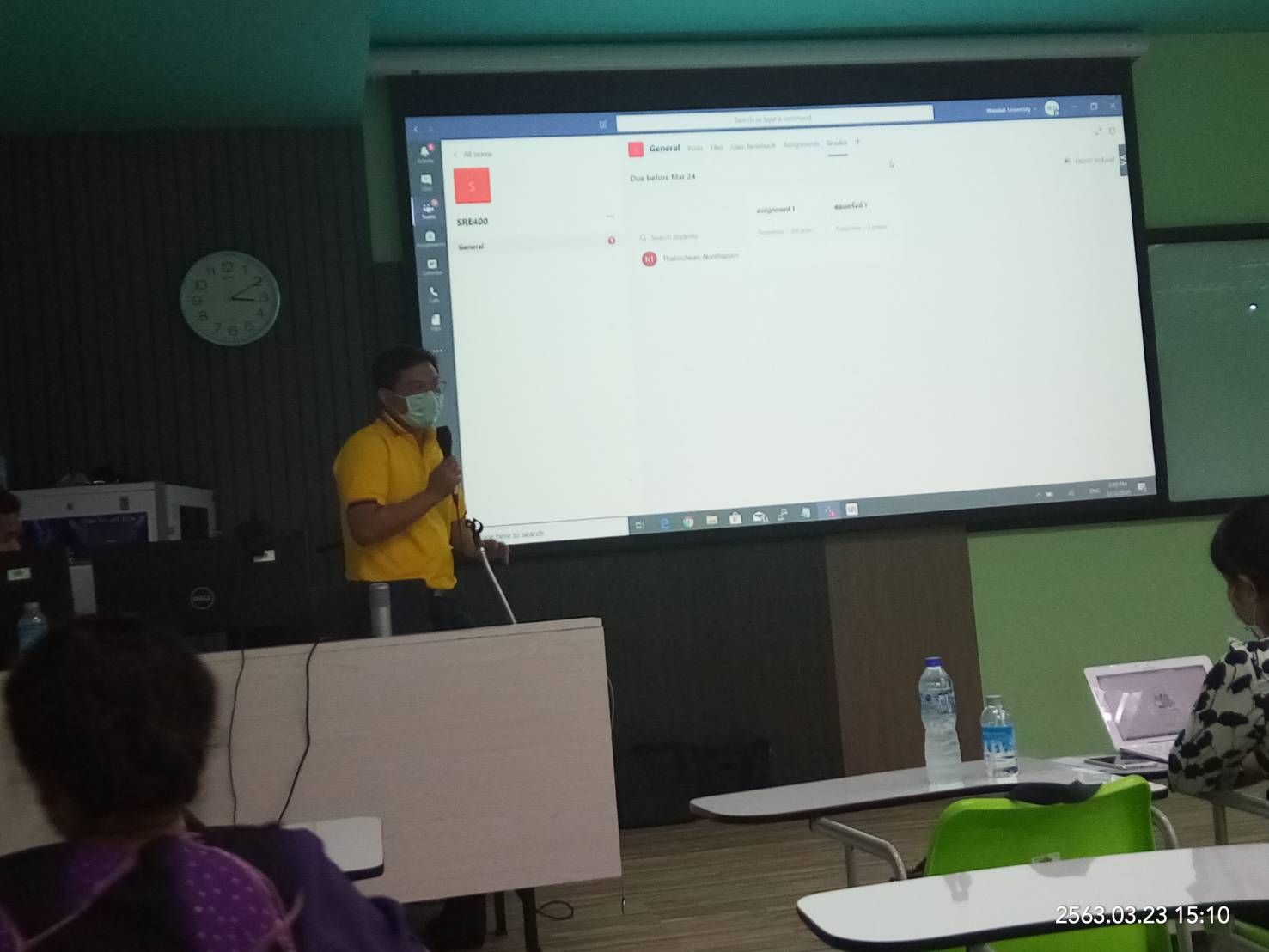 นายวิชชุกร ด่านเดชา และ นายอวยชัย บุญญวงศ์ บุคลากรศูนย์เทคโนโลยีดิจิทัล เป็นวิทยากรอบรมการใช้งาน Microsoft Teams ให้แก่คณาจารย์ และผู้สนใจ ที่เข้าร่วมอบรมหลักสูตร การสาธิตการใช้เครื่องมือสำหรับการเรียนการสอนออนไลน์ ในวันพุธที่ 25 มีนาคม 2563 และการอบรมการใช้ Microsoft Teams , Zoom และ Loom ในวันพฤหัสบดีที่ 26 – วันศุกร์ที่ 27 มีนาคม 2563 ซึ่งจัดโดยศูนย์บรรณสารและสื่อการศึกษา ผู้เข้าอบรมได้เรียนรู้การใช้งาน Microsoft Teams ครอบคลุมเนื้อหาตั้งแต่ การเข้าใช้งาน การสร้างทีม/การเข้าชั้นเรียน การจัดการห้องเรียน การทำงานร่วมกัน การมอบหมายงาน การทำแบบทดสอบ จนถึง Application ต่าง ๆ ที่เกี่ยวข้อง จนสามารถนำ Microsoft Teams ไปใช้จัดการเรียนการสอนออนไลน์ได้อย่างมีประสิทธิภาพ