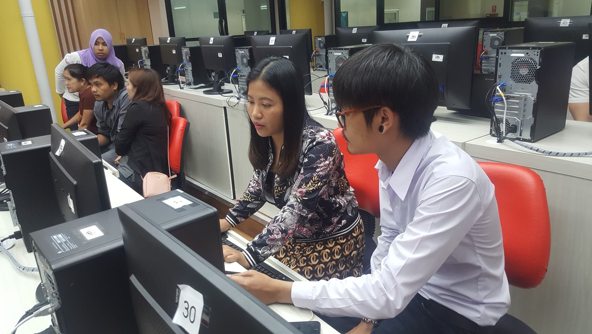 เมื่อวันพุธที่ 6 กุมภาพันธ์ 2561 เวลา 13.30 – 16.30 น. ณ ห้องปฏิบัติการฝึกอบรมเทคโนโลยีดิจิทัล 2 ชั้น 2 อาคารคอมพิวเตอร์ นำทีมโดย รศ.ดร.สุรินทร์ ไหมศรีกรด รองอธิการบดี ฝ่ายกิจการต่างประเทศและพัฒนาการเรียนการสอน ดร. เปรมฤดี นุ่นสังข์ ผู้อำนวยการศูนย์เทคโนโลยีดิจิทัล นายวชิรศักดิ โภคากรณ์ นายดนัยณัฐ ซังเรือง นายวิชชุกร ด่านเดชา และนายศุภวิชญ์ วีระพงศ์ นักศึกษาสำนักวิชาสารสนเทศศาสตร์ สาขาเทคโนโลยีสารสนเทศ จัดฝึกอบรมการปรับปรุงข้อมูลบุคลากรในเว็บไซต์ให้กับสำนักวิชาและวิทยาลัย รวม 25 คน