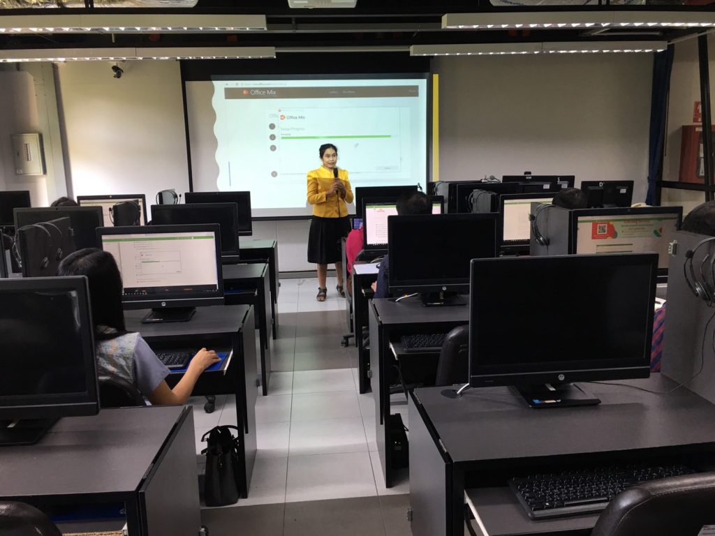 เมื่อวันจันทร์ที่ 18 กุมภาพันธ์ 2562 เวลา 09.00 – 12.00น. ณ ห้อง E-Testing 4 อาคารคอมพิวเตอร์ ศูนย์เทคโนโลยีดิจิทัลและศูนย์นวัตกรรมการเรียนและการสอน จัดอบรมหลักสูตร การสร้าง VDO lesson อย่างง่ายด้วย Office Mix สำหรับ Flipped Classroom โดยนางสาวภัทรานิษฐ์ จิตรตรง เจ้าหน้าที่วิเคราะห์ระบบงานคอมพิวเตอร์ ศูนย์เทคโนโลยีดิจิทัล ได้เข้าร่วมเป็นผู้ช่วยวิทยากรและได้รับเกียรติจาก ผศ.ดร.สุธัญญา ด้วงอินทร์ ผู้ช่วยอธิการบดีฝ่ายพัฒนาการเรียนการสอน เป็นวิทยากรในการอบรมครั้งนี้ด้วย
