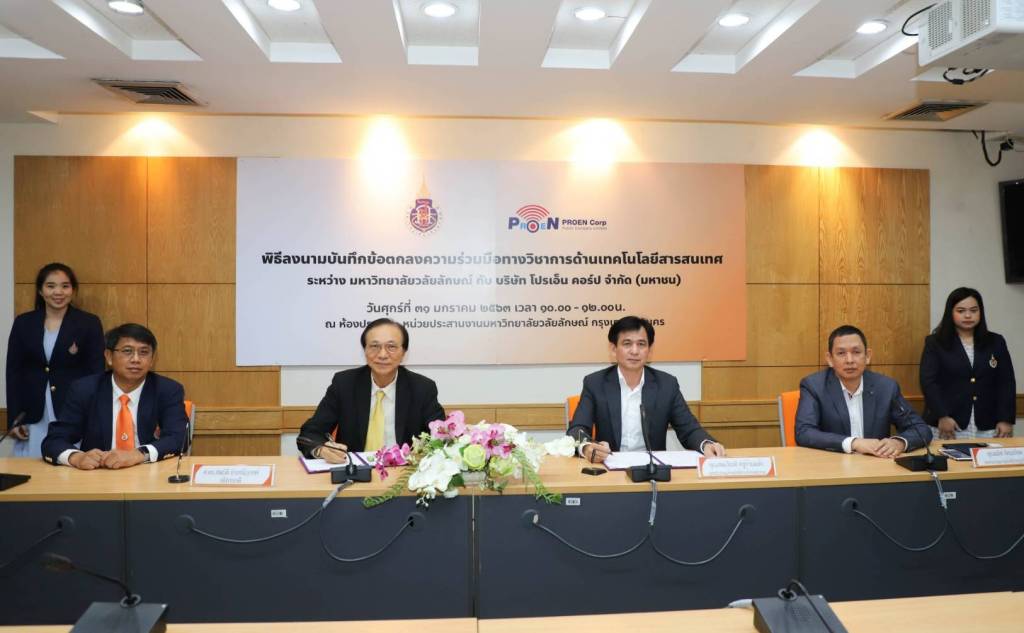 ศาสตราจารย์ ดร.สมบัติ ธำรงธัญวงศ์ อธิการบดี ม.วลัยลักษณ์ ลงนามบันทึกข้อตกลงความร่วมมือ เพื่อพัฒนาศักยภาพของระบบเทคโนโลยีสารสนเทศ กับ นายกิตติพันธ์ ศรีบัวเอี่ยม และ นายสมเกียรติ อยู่บ้านแพ้ว กรรมการผู้มีอำนาจลงนาม บริษัท โปรเอ็น คอร์ป จำกัด (มหาชน) โดยมี รองศาสตราจารย์ ดร. สุวิทย์ วุฒิสุทธิเมธาวี รองอธิการบดีฝ่ายบริหาร มหาวิทยาลัยวลัยลักษณ์ และนายธนศักดิ์ ตั้งปณิธานวงศ์ เจ้าหน้าที่ฝ่ายกฎหมาย บริษัท โปรเอ็น คอร์ป จำกัด (มหาชน) ลงนามเป็นพยาน เมื่อวันที่ 31 มกราคม 2563 ที่ผ่านมา ณ หน่วยประสานงานมหาวิทยาลัยวลัยลักษณ์ กรุงเทพมหานคร โดยมี ดร.เปรมฤดี  นุ่นสังข์ ผู้อำนวยการศูนย์เทคโนโลยีดิจิทัล เป็นผู้รับผิดชอบดำเนินงานพิธีลงนามตามนโยบายขับเคลื่อนมหาวิทยาลัยอัจฉริยะ (Smart University)
